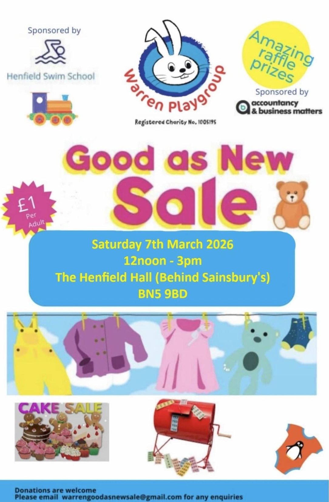 Save the date - To be held on Saturday 16th March in the Henfield Hall, 1-3pm.